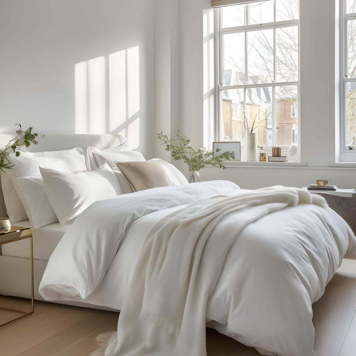 Indulge in the opulence of a five-star hotel with a pure white Egyptian cotton sateen bed linen set. Crafted from the finest single-ply cotton yarn, this 500 thread count luxury bedding envelops you in a silky-smooth embrace. Featuring a duvet cover, 40cm extra deep fitted sheet, and four pillowcases, it offers the ultimate sleep experience. Available in a range of sizes including double, king, super king and emperor, so you can find the perfect fit for your bed. Winner of ‘best bedding’ from The Telegraph, Expert Reviews, GQ, Evening Standard, T3, GLAMOUR and Your Home, who says: “This bedding feels reassuringly heavy, but the glossy, sateen finish makes it feel silky and cool.” ★★★★★