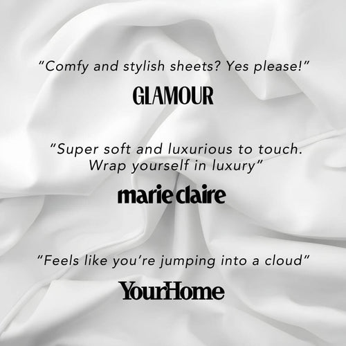 Free next day delivery, No Quibble Returns, Money Back Guarantee 5 star hotel quality for half the price Expert craftsmanship for the perfect finish, colour and size Sourced directly with no middleman Exclusive luxury crease resistant fabric developed by Hampton & Astley Thousands of happy customers worldwide 30 day trial and 1 year guarantee Snuggle up and drift off in the dreamiest, most comfortable pure white Egyptian cotton sateen bed linen. This 500 thread count luxury duvet cover, flat sheet and two pillowcase set is so soft, silky and smooth, it’s just like sleeping on a cloud. Available in sizes ranging from double, king and super king. Awarded ‘best bedding’ by The Telegraph, Expert Reviews, GQ, Your Home, Evening Standard, T3 and GLAMOUR, who says: “A luxurious, 'crease-resistant', super-smooth sateen set from trusty Hampton & Astley.” ★★★★★ Learn more about Hampton & Astley bedding Details In the box Size & Care Returns Sumptuously soft So silky soft and smooth, it’s like you’re wrapped in silk. Our bed linen is made from the finest, naturally breathable long-staple cotton fibres to keep you comfy all year round. Beautifully designed 500 thread count sateen weave gives the bedding an ultra luxurious, hotel quality look. Well made Designed to be strong, durable and always look beautiful, wash after wash, with the minimum of ironing. No nasties OEKO-TEX certified free from harmful substances and no chemical smells. "Thanks to Hampton and Astley you can cocoon yourself in luxury. Add that duvet day to your diary immediately" - GQ Magazine "Super soft and luxurious to touch. Wrap yourself in luxury" - Marie Claire Each Hampton and Astley Long-Staple Egyptian Cotton Sateen Luxury Duvet Cover, Deep Fitted Sheet and Two Pillowcases set contains: 1 x Hampton and Astley Long-Staple Egyptian Cotton Sateen Luxury Duvet Cover 2 x Hampton and Astley Long-Staple Egyptian Cotton Sateen Luxury Pillowcases 1 x Hampton and Astley Long-Staple Cotton Sateen Luxury Flat Sheet Hampton and Astley Long-Staple Egyptian Cotton Sateen Luxury Duvet Cover, Flat Sheet and Two Pillowcases set comes in the following sizes: Double Duvet Cover: Width 200cm x length 200cm King Duvet Cover: Width 225cm x length 220cm Super King Duvet Cover: Width 260cm x length 220cm Pillowcase: Width 48cm x length 70cm Double Flat Sheet: Width 235cm x length 275cm King Flat Sheet: Width 275cm x length 275cm Super King Flat Sheet: Width 305cm x length 275cm For best appearance, we recommend washing your bedding on it's own on a cool or warm cycle, and line-drying to preserve the fibres and colour. If you’re using a dryer, choose low heat and a low tumble cycle for the best results. Iron inside out. We want you to be delighted with your purchase. Therefore if you are not completely satisfied then please get in touch and we will do what it takes to make it right. All of our products can be returned or exchanged within 30 days and include an additional 1-year warranty. Plus we'll pay for the return shipping if you're in the UK. Returns will be refunded in the original payment method or store credit. UK Free UK shipping on all orders. Delivery time is approximately 3-5 working days. Europe and Rest of World Free shipping available to all countries based on minimum order spend. We cover duty and taxes for all shipments. Delivery time is approximately 7-14 working days.